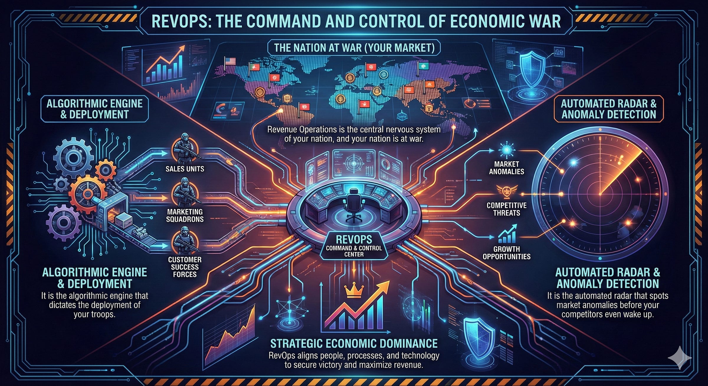 Revenue Operations is the central nervous system of your nation, and your nation is at war. It is the algorithmic engine that dictates the deployment of your troops. It is the automated radar that spots market anomalies before your competitors even wake up.